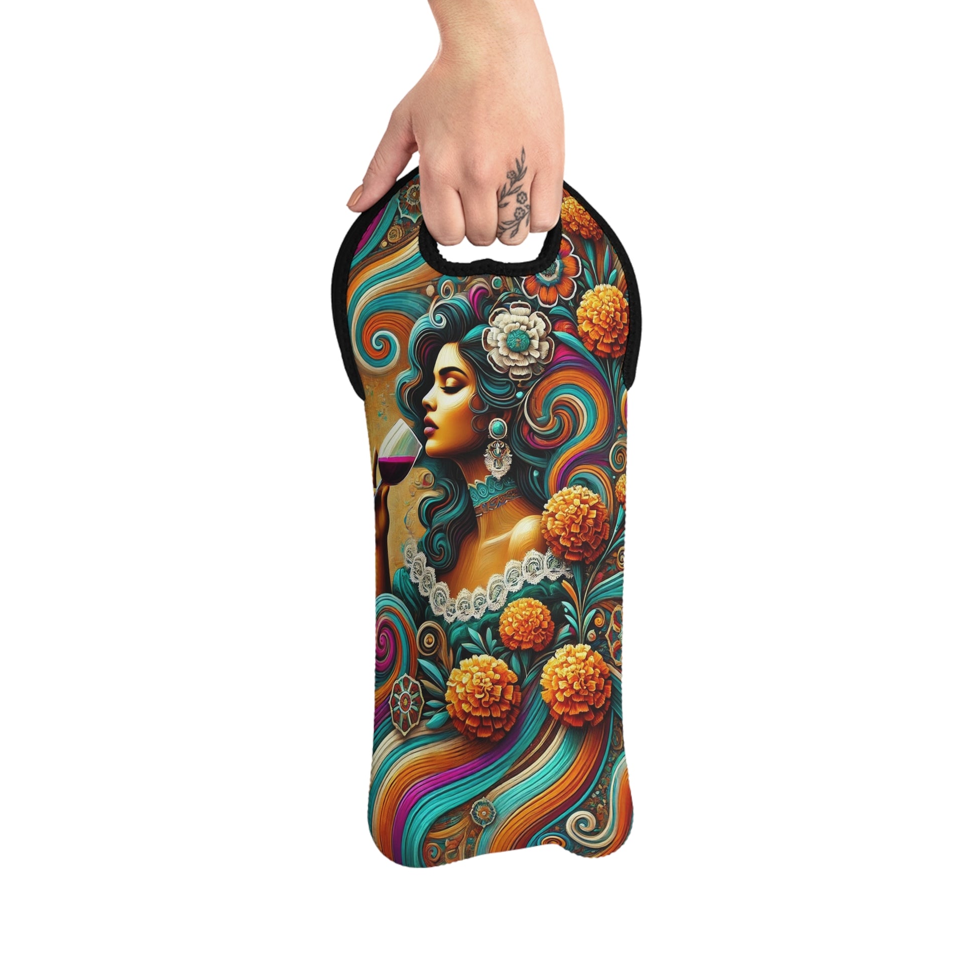 Designed to keep your wine refreshingly chilled and bring a touch of Latino culture wherever you go, wine tote is as practical as it is beautiful. With a comfortable carrying handle and a soft grip, transporting your favorite bottle to picnics, friends' gatherings, or celebrations is a breeze. The all-over print, inspired by the vibrant essence of Latino heritage, covers every inch of the neoprene surface, making this tote both eye-catching and meaningful. Perfect for wine lovers who celebrate diversity and elegance, Alma Brillante ("Bright Soul") captures the radiant spirit of Latino culture in every detail.